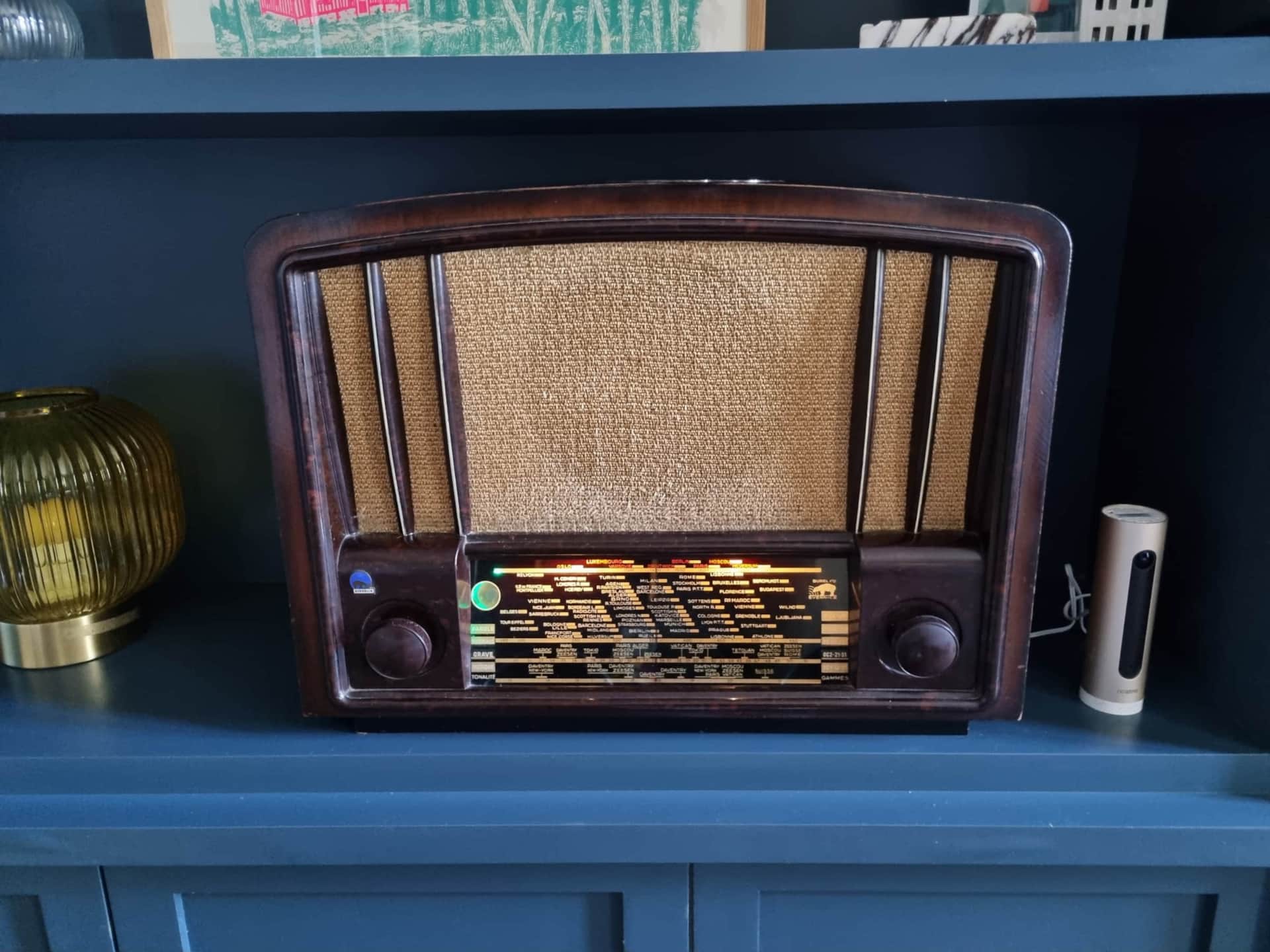 The vintage radio in the Chartreuse living room used to belong to my grandmother 💛